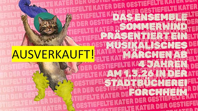 Das Ensemble SommerWind lädt wieder zu einem musikalischen Märchen ein: „Es war einmal ein Müller, der hatte drei Sohne, seine Mühle, einen Esel und einen Kater“ - einen gestiefelten Kater!